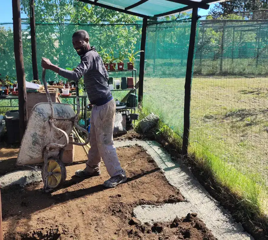 Now I had space for pots, sand, tools, and a dedicated area to work, instead of trying to squeeze in on a corner of a table. It also freed up space under the countertops to let me add beautiful little Garden Beds, adding colour and beauty to an already beautiful place 😄. The walls were painted a bright, brilliant green colour for that wow-this-is-funky feel, and the floor was paved so I no longer had to walk in sand all day. Luxury! Pure Luxury 😎🥂😏✨