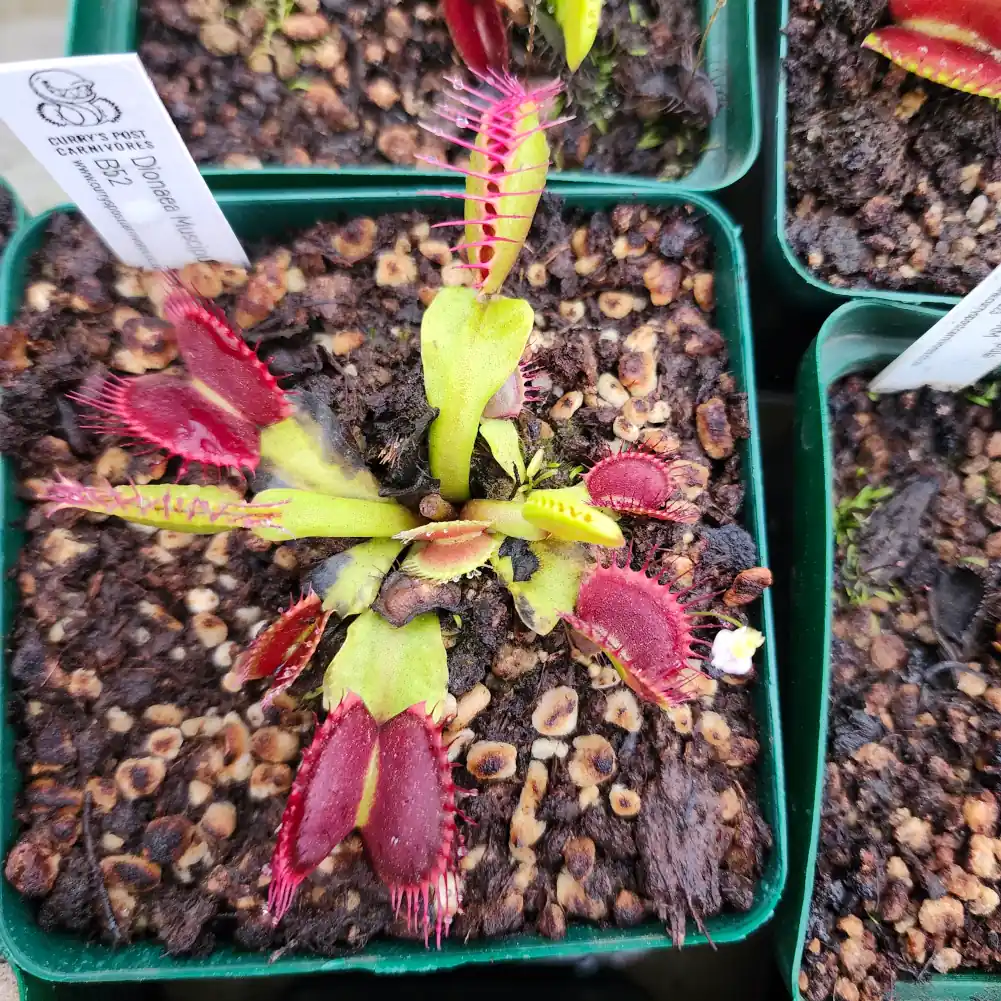 Feeding: You can supplement feeding with live flies or bugs. Do not feed it freeze-dried or dead bugs, as the traps will not digest the food and re-open wasting energy. A weekly spray of a light foliar fertilizer will also benefit the plant.