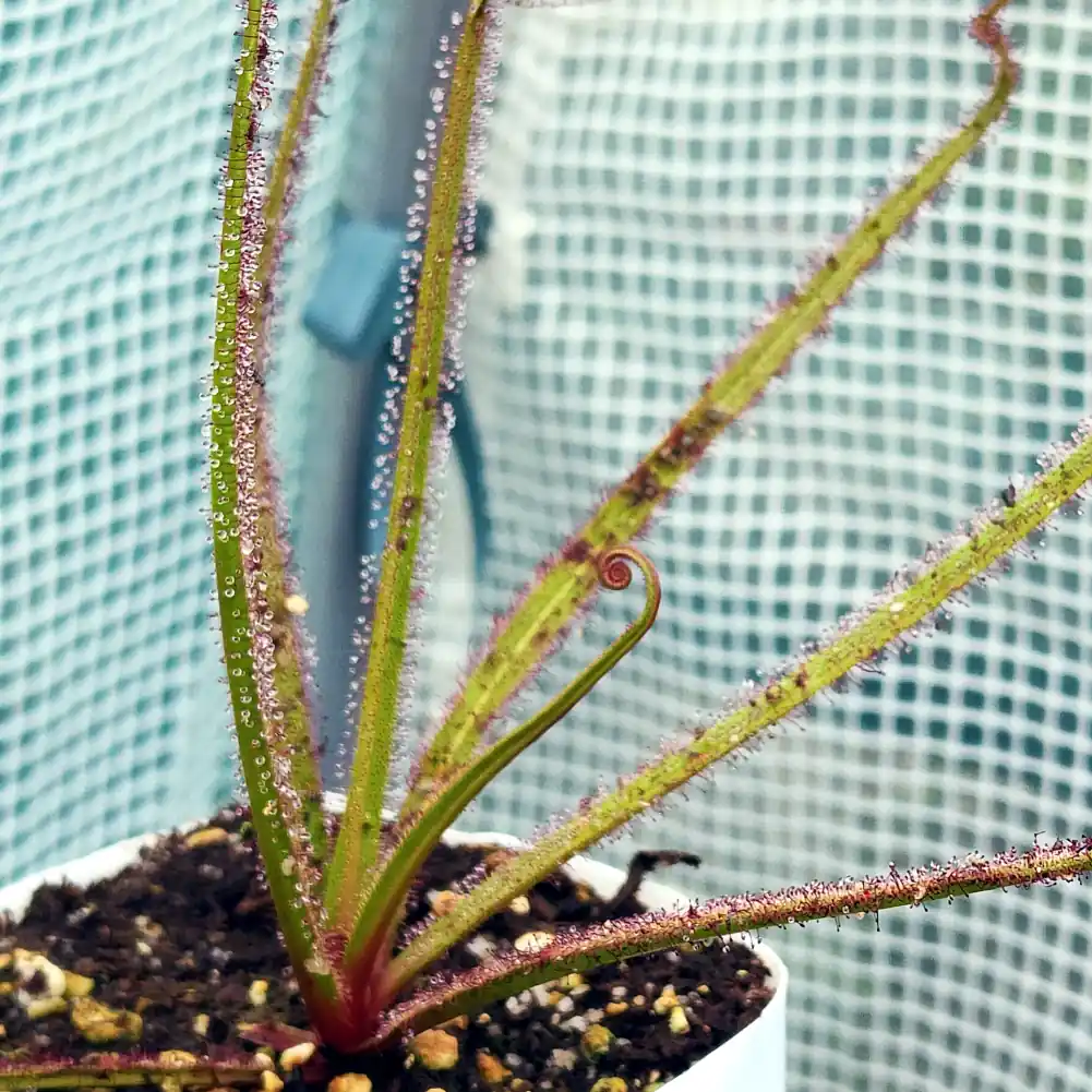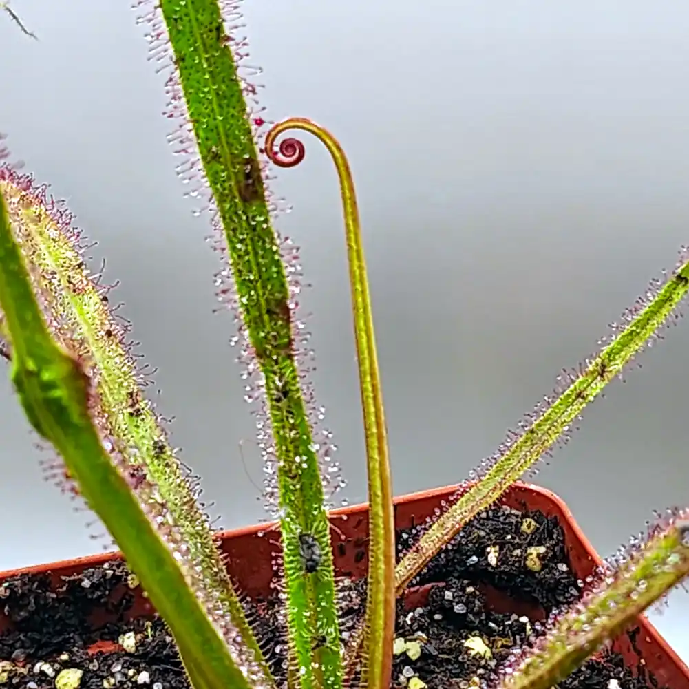 Water: Keep the soil damp by watering from overhead every day, twice a day on hot days. Continue watering until excess water pours out the bottom of the pot, saturating the soil. DO NOT LET THE POT SIT IN TRAYS OF WATER if you are fertilising via the root, as this can leach out into the water and kill other plants. If they are in a tray by themselves, you can treat them like normal Drosera and water via the tray method. Use Reverse Osmosis, Distilled or Rain Water Only.