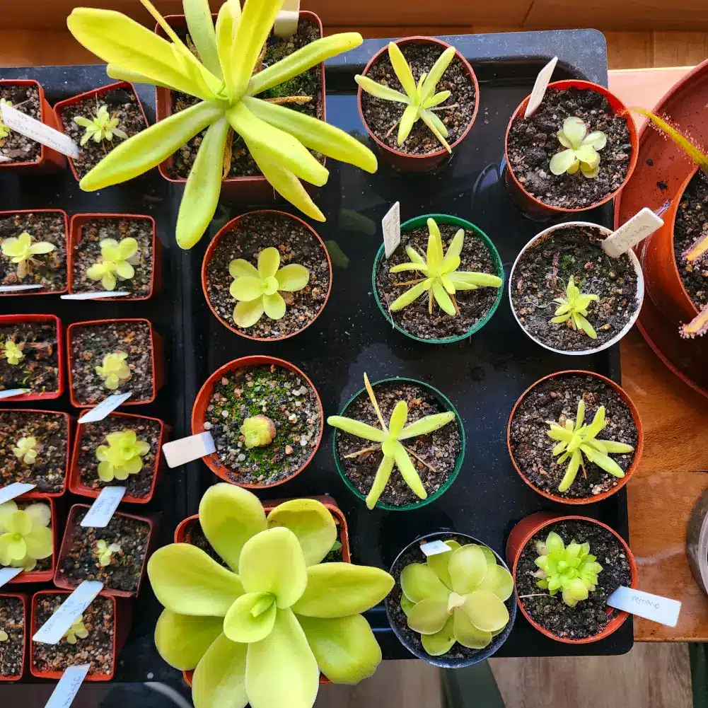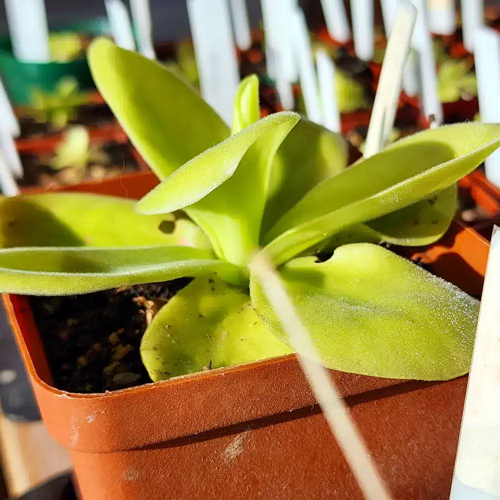 Butterworts, also known as Pinguicula, are fascinating carnivorous plants with soft, thick leaves that look almost too gentle to be deadly. Each leaf is coated in a clear, super-sticky substance that acts like natural flypaper. When a small insect or gnat lands on the leaf, it becomes stuck almost instantly. The plant then slowly releases digestive enzymes, breaking down its unlucky visitor and absorbing the nutrients through the leaf surface.