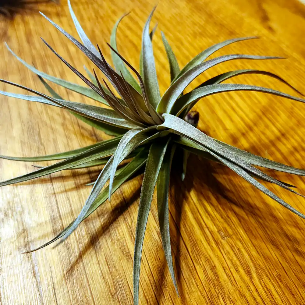 Tillandsia Stricta x Aeranthos is a vibrant hybrid that blends the lush, soft foliage of stricta with the tougher, upright structure of Aeranthos. The result? A hardy, fast-growing air plant with gorgeous green to silvery leaves that blush an ever so subtle purple, (evident from the Aeranthos parentage) when exposed to good light levels and a stunning pink flower spike topped with bright purple blooms.