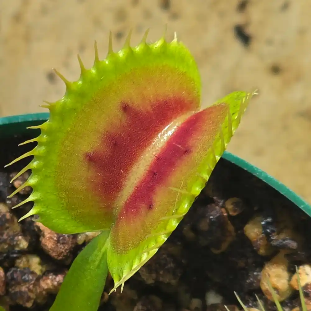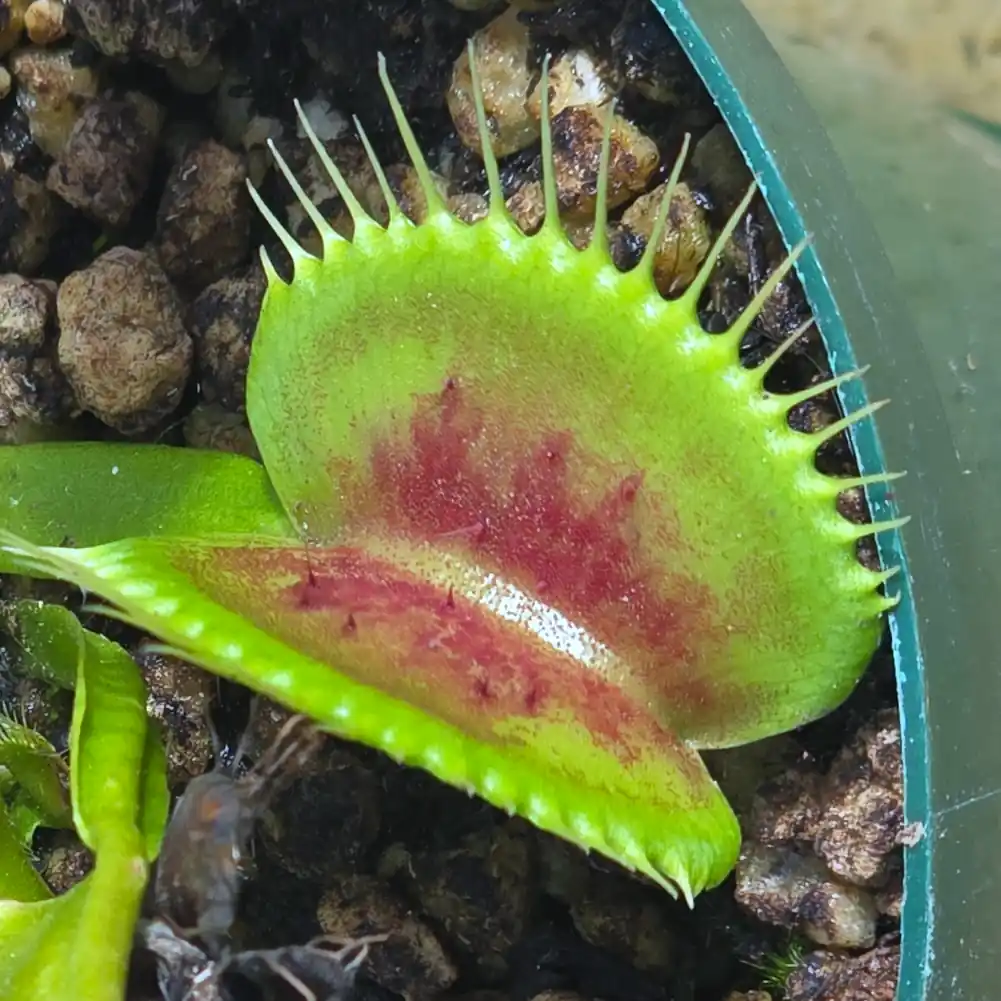 True to its name, the BCP Red Bull is a powerhouse cultivar that brings an aggressive, high-energy presence to your collection. This European-bred beast is famous for its thick, sturdy growth and its ability to maintain an intense, deep burgundy-red coloration across the entire trap, inside and out. Unlike some varieties that only blush in the sun, this one stays dark and moody, looking exactly like a predator that’s ready to charge.